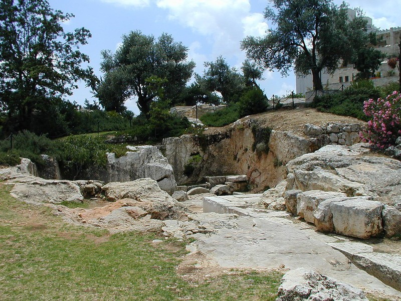 ཡི་སི་ར་ཨེལ ་གྱི་རྒྱལ་ས་ཡེ་རུ་ཤ་ལེམ ་གྱི་ལྕགས་རིའི་ཕྱི་ལ་ཡོད་པའི་ས་ཆ་ཞིག་ཡིན། དེར་གཙོ་བོ ་ཡེ་ཤུ ་རྒྱང་ཤིང ་སྟེང་བཀལ་བ་རེད། (མར་ཀུ ་ 15:22 ལ་གཟིགས་)
